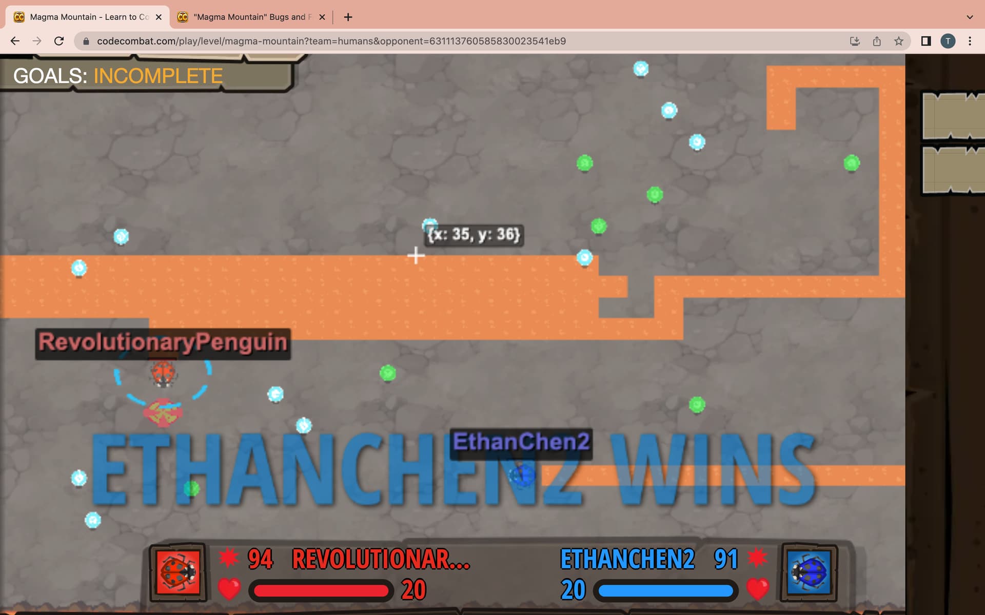 As you can see, my health decreased when I went over the lava even when I was jumping. I do not think this happened before, so I think some newer modification to the arena caused this. I started the jump when my snail was in lava, maybe that had something to do with the bug.