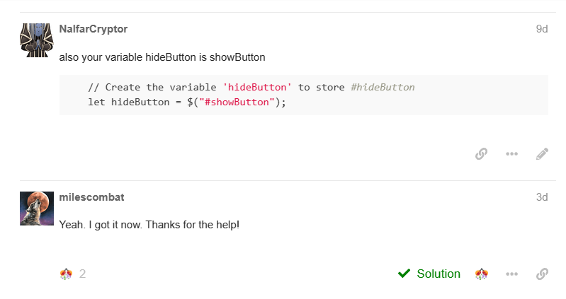 huh? wdym by that im not saying why they need help im saying that even after i help them they give the solution to them selves