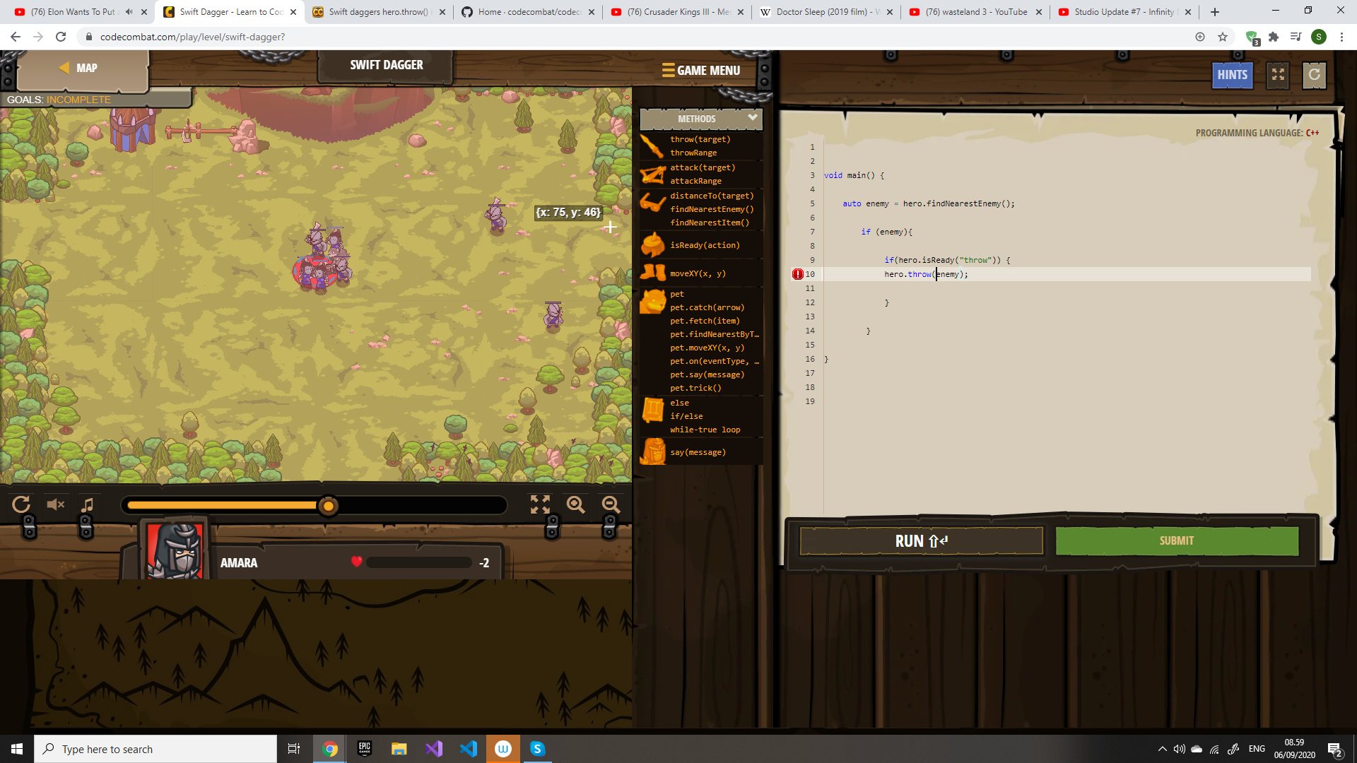 auto enemy = hero.findNearestEnemy(); - Check if there’s an enemy. Hint: