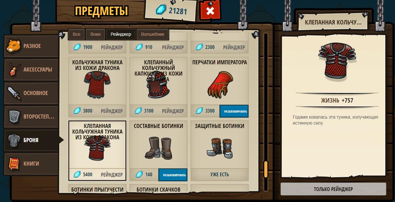 В качестве героя выбран рейнджер, но предметы могу купить только для воина, почему так?