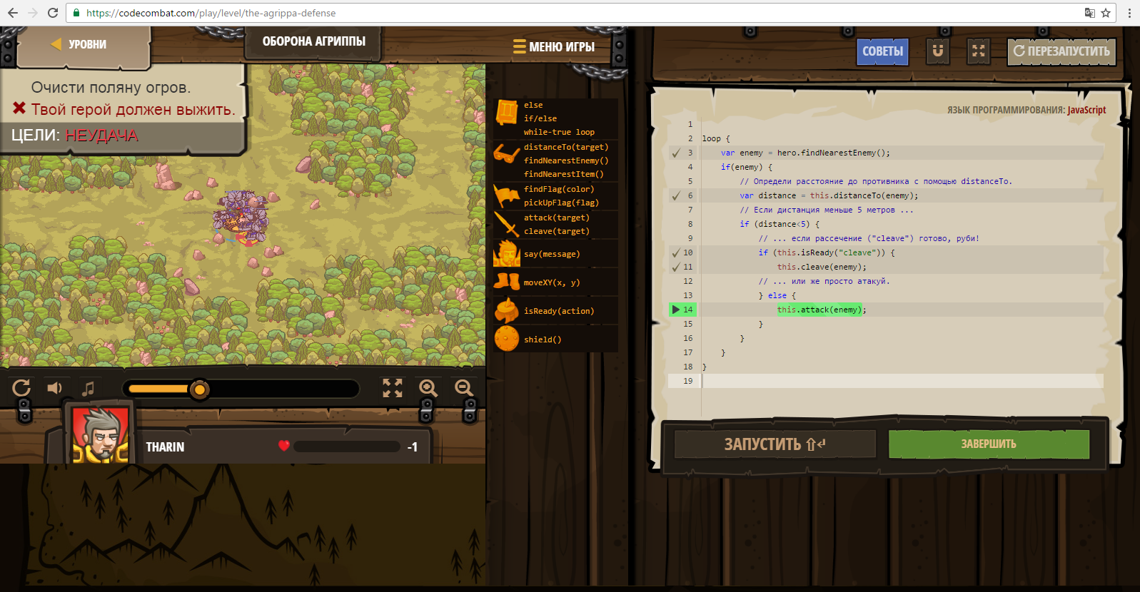 // Определи расстояние до противника с помощью distanceTo.